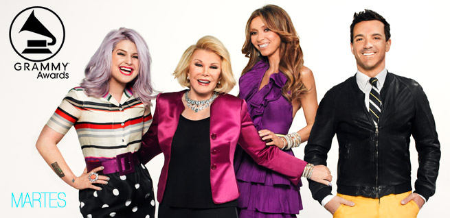 Joan Rivers y su equipo de expertos en moda estarán presentes en el desfile de celebridades de la Alfombra Roja de los Grammy Awards 2014, para emitir su implacable juicio sobre las estrellas que destacaron o fracasaron por la elección de sus outfits para esta importante ceremonia.